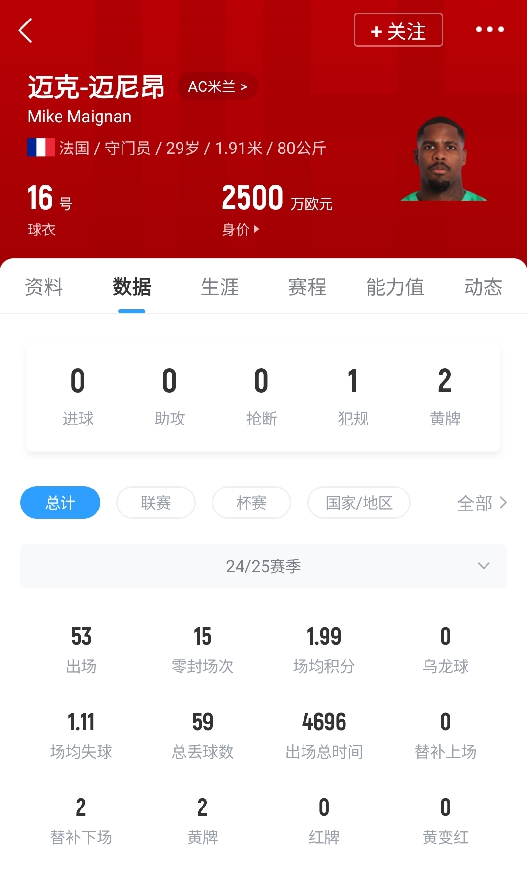 据罗马诺此前报道,切尔西已经提交了一份1500万欧的转会报价,但米兰希望报价更高。迈尼昂现年29岁,与AC米兰的合同仅剩最后一年,德转身价2500万欧。本赛季迈尼昂共为米兰出战53场比赛,完成15次零封。
